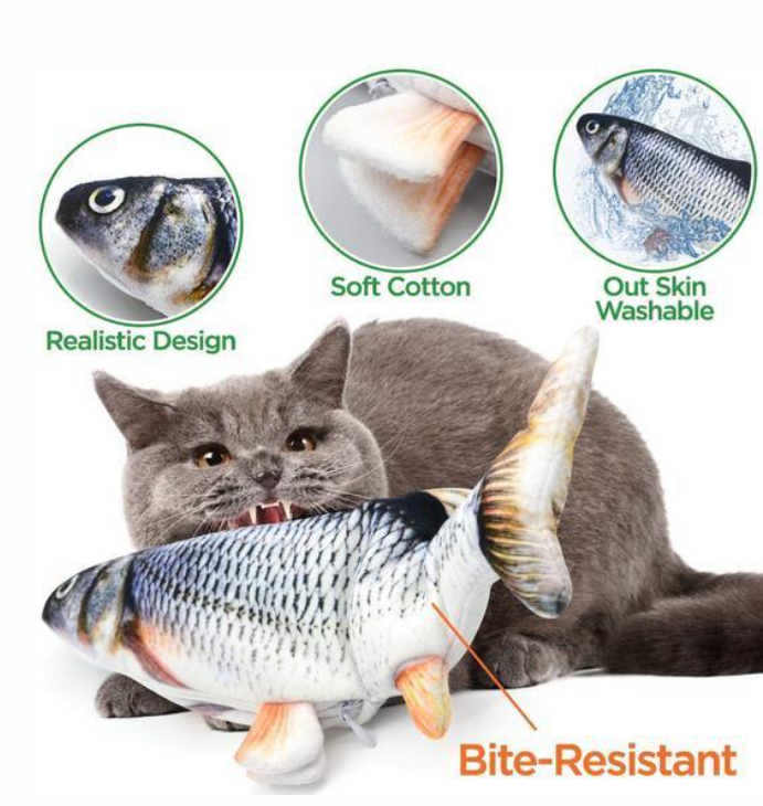 Entertain your feline friend with the innovative Interactive Floppy Fish Cat Toy. Its smart motion activation technology provides an unpredictable play experience that keeps boredom at bay and offers your cat hours of fun. Whether it's interactive playtime with you or solo adventures, this toy promises sensory stimulation to awaken your cat's hunting instinctsfloppy fish toy