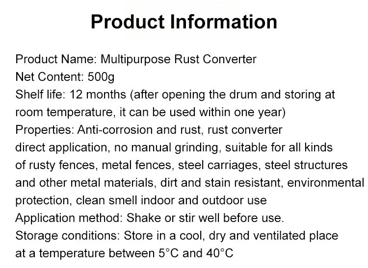 • [Convert Existing Rust]It transforms the existing rust into a protective polymer barrier, which is weatherproof and can give metal objects a fresh coat of paint. And will provide more than twice as much rust protection.