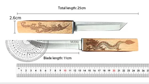 Reminiscent of traditional samurai swords stored in wooden scabbards, this unique piece embodies a rich heritage. Equipped with a razor-sharp 4.5-inch chef and kiritsuke knife, this compact collector's item is ready for food preparation both in the kitchen and the great outdoors