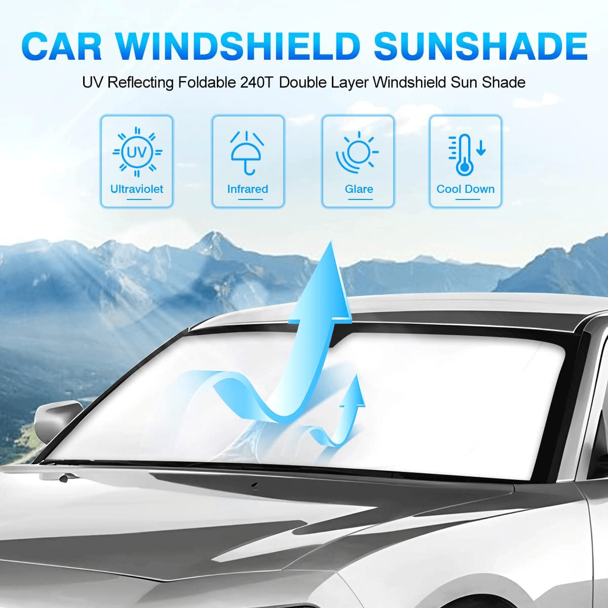 • 【Thicker design】: the latest thicker car window shades in 2024! More sun shades! More sun protection! Our car sunshade is designed with 240T thickened titanium silver coating, which can greatly block the sunlight and heat, so you can enjoy the cool and quiet time alone in your car in the hot summer sun!