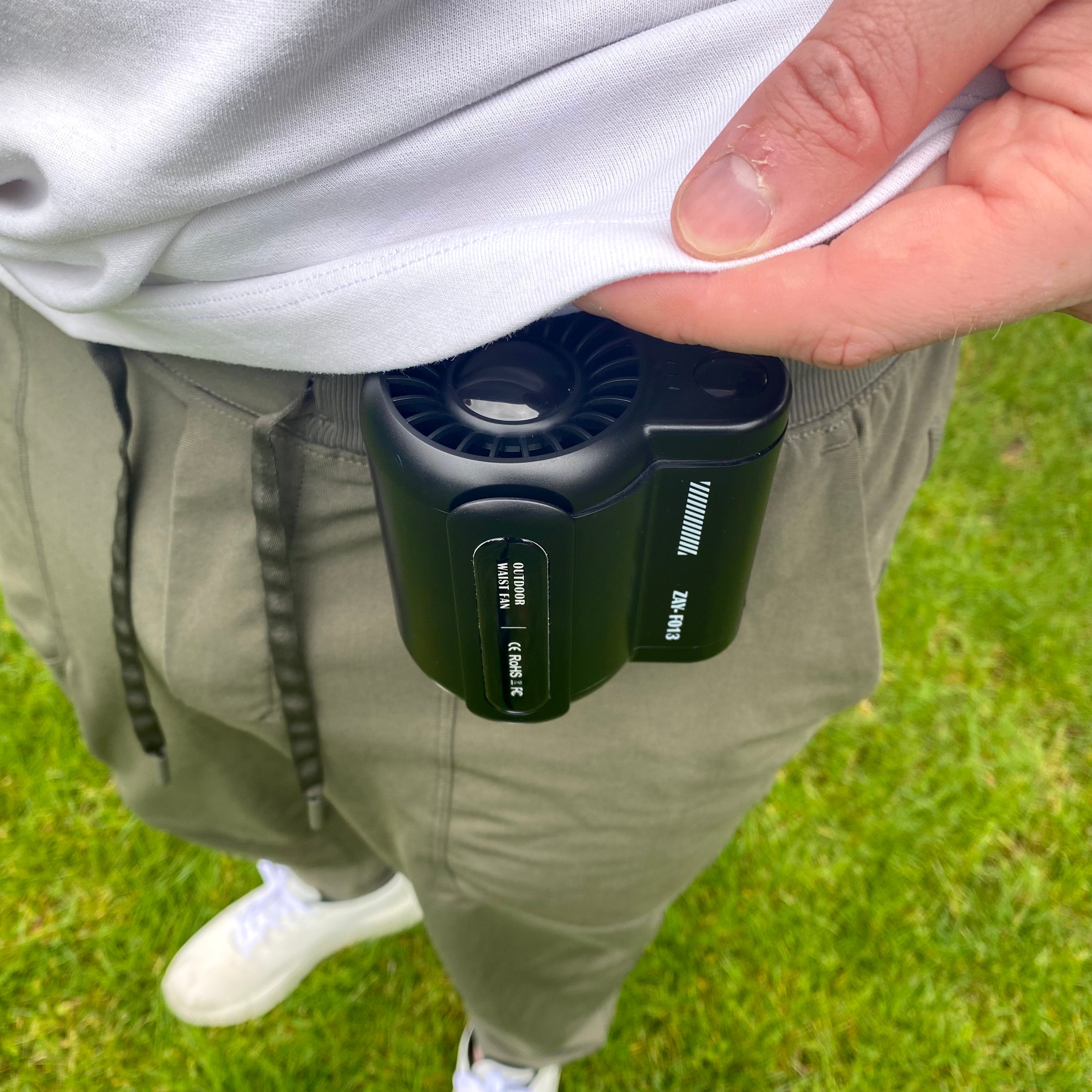 Use the outside clip to secure the edge of your shirt and maximize airflow.