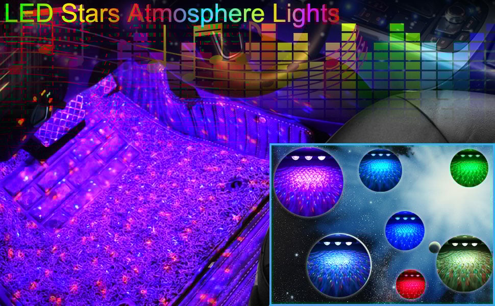 - 7colors - Red, blue, green, purple, red + green, red + blue, green + blue, Multi-color full stars neon accent lights for your car floor front & back row.