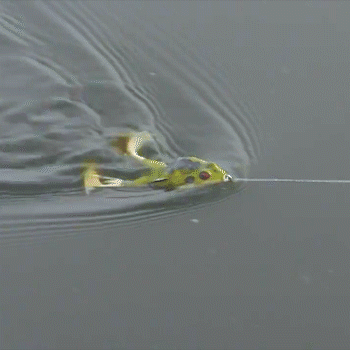 • The double prop feet on this frog lure make a lot of noise and disturbance on the water surface, making it an easy target to track down. Active and reactive fish cannot resist its call.