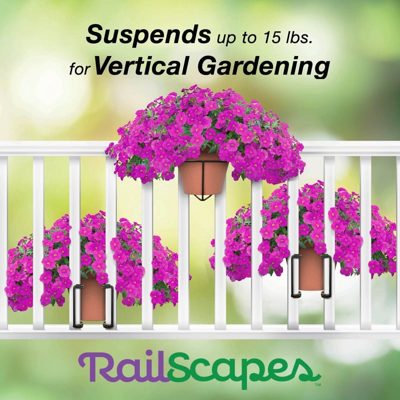 Plant Clips are designed to disappear and engineered to suspend up to 15 lbs. (25 lbs. at the foot of the railing) for vertical gardening.