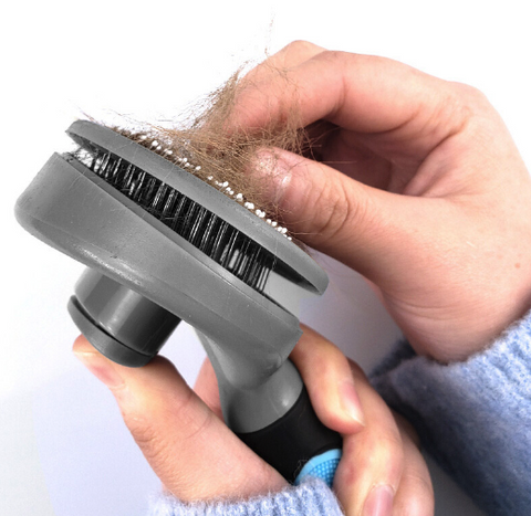 • This features a push button which pushes forward the bristles to use, and reverses when you are done grooming.
