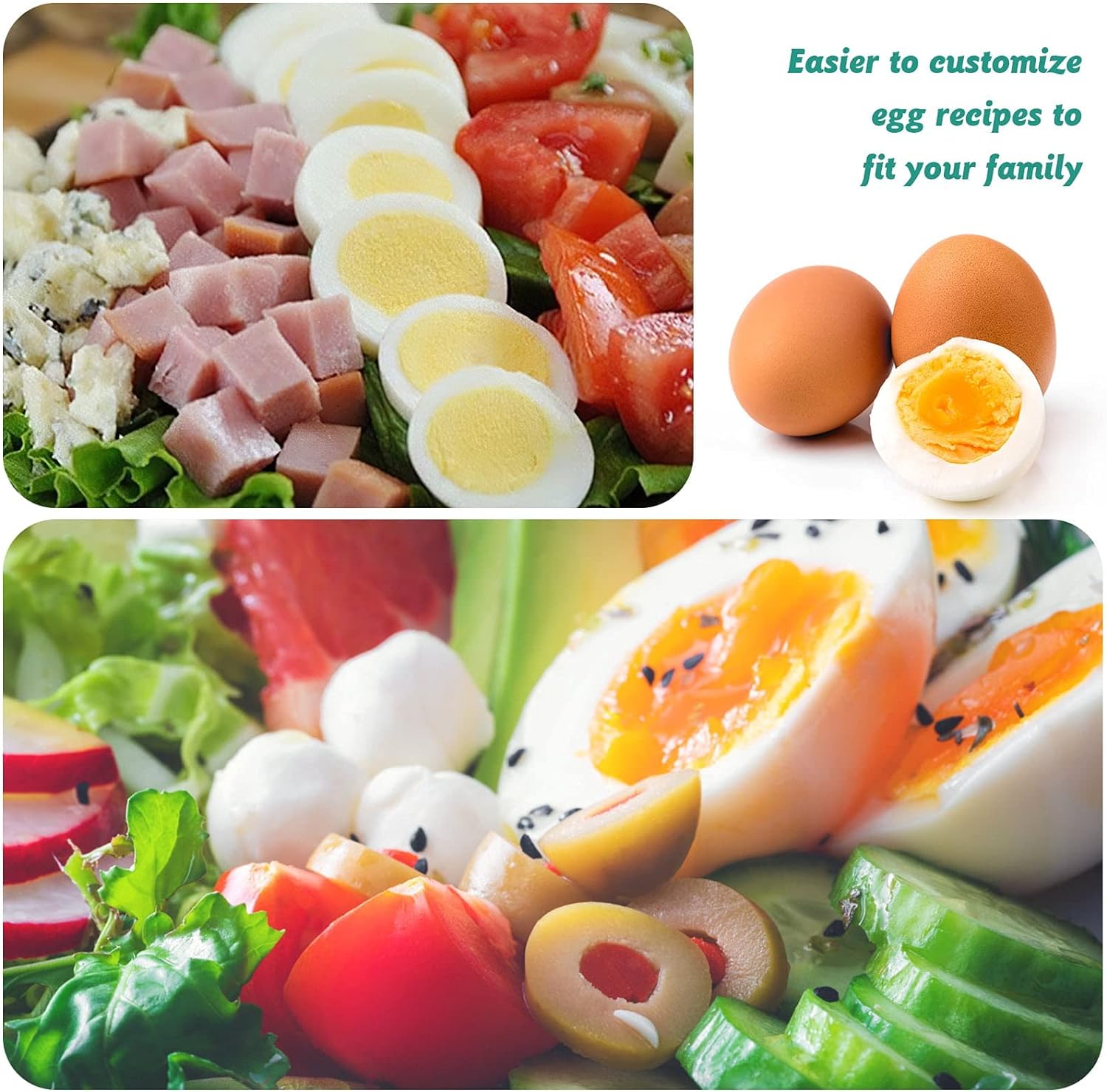 ✅ VERSATILE: This is the PERFECT appliance for picky eaters, large families, or those who have busy schedules. Hard boiled eggs, soft boiled eggs, poached eggs, scrambled eggs, individual omelets,This hard egg boiler without shell is Dishwasher safe.